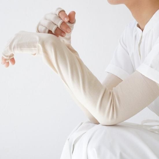 腕をしっかりとカバーするロング丈で、紫外線や冷房からの保護もバッチリ。