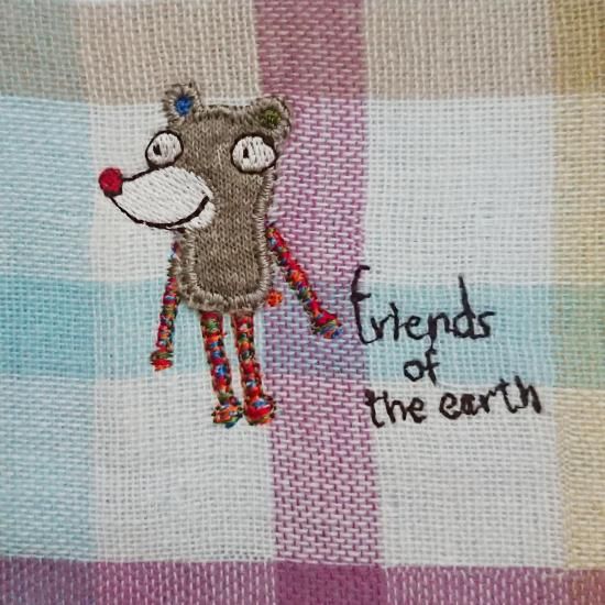 裏面はカラフルなパイル織と楽しいキャラクター刺繍とフェルトタグがチャーミングです。