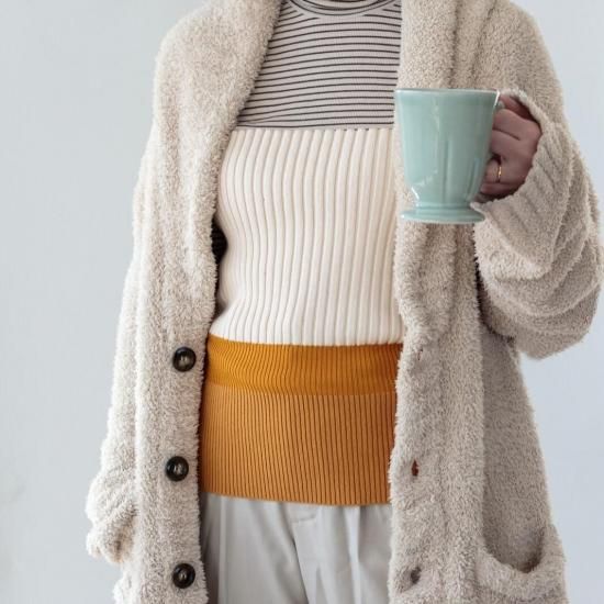 段階的にリブ幅を変えることで、お腹まわりはゆったり、腰まわりはほどよくフィットします。